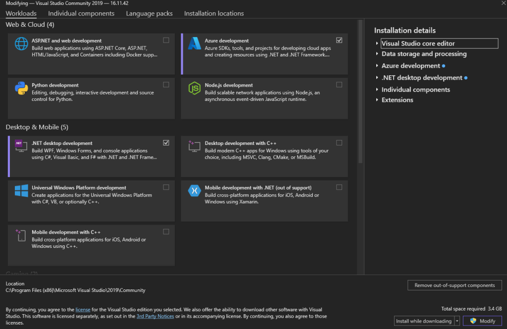 • .NET desktop development workload